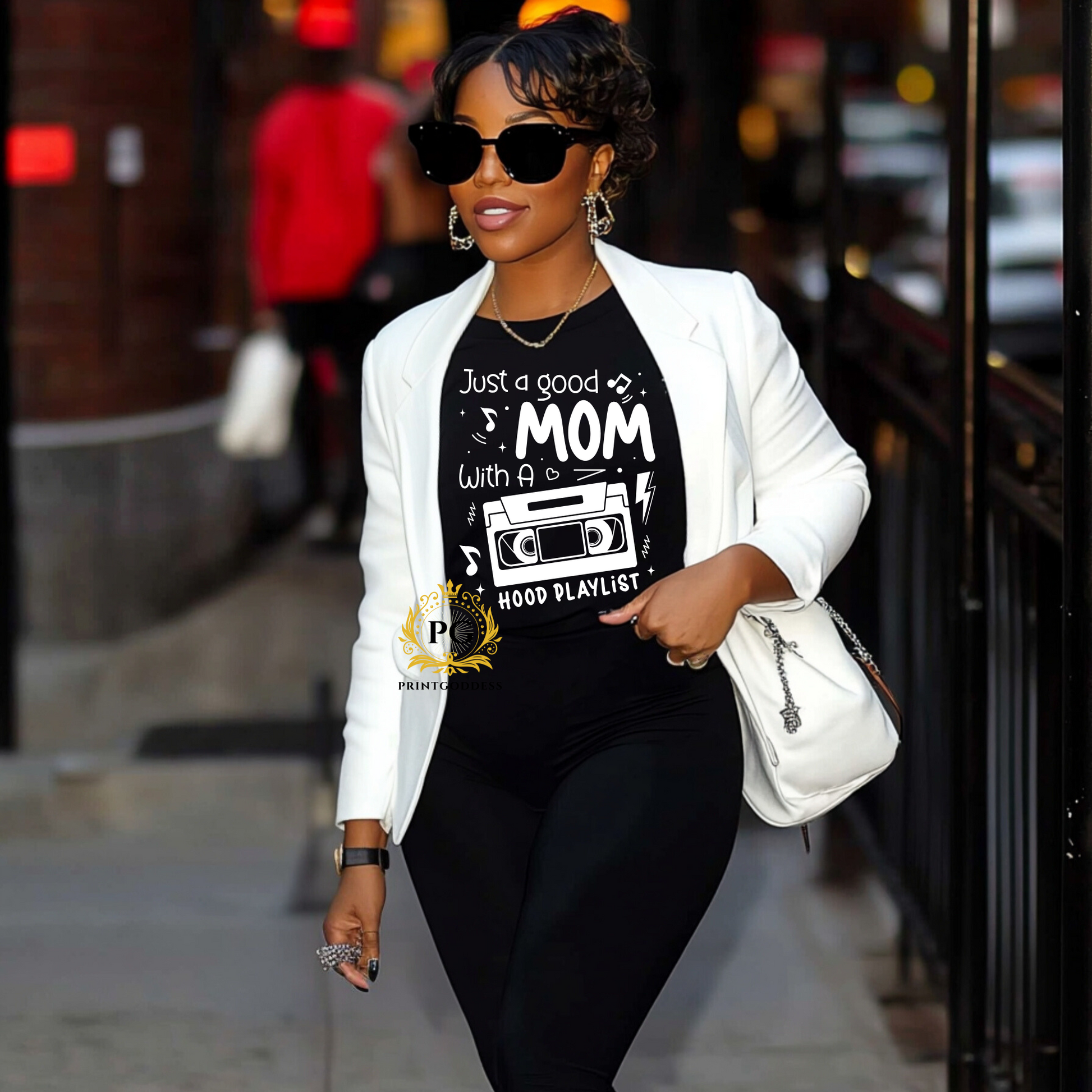 MOM HOOD PLAYLIST SCREEN PRINT TRANSFER